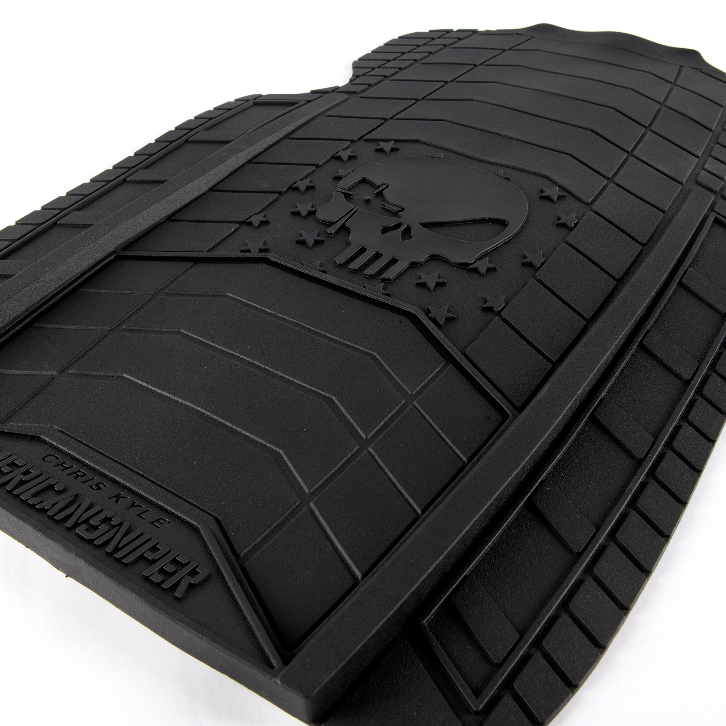 The Chris Kyle “The Legend” Front Floor Mats combine American strength with everyday protection. Made from heavy-duty rubber, these mats guard your vehicle’s interior from dirt, water, and grit — all while honoring the unmatched legacy of the American Sniper.